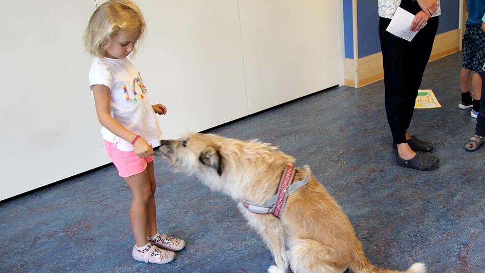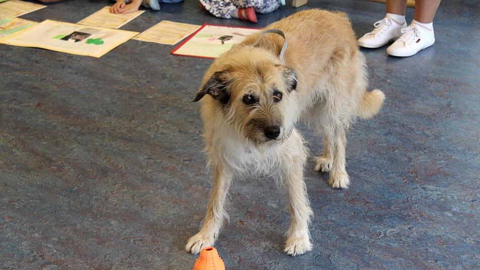 "Die Kinder lernen so den richtigen und respektvollen Umgang mit Tieren. Ängstlichen Kindern kann die Angst genommen werden, indem man sie Schritt für Schritt an das Tier gewöhnt. Wenn sie merken, dass der Hund kein Feind ist, lernen sie vielleicht, in Zukunft etwas Positives mit dem Hund zu verbinden", erläutert Pause das Experiment. Zu Beginn wurde kindgerecht vieles über Hunde vermittelt und es wurden Dinge gegenübergestellt, die ein Mensch braucht und ein Hund braucht. Schließlich wurde Stella vorgestellt und die Kinder erfuhren die Lebensgeschichte der von einer Tierschutzorganisation stammenden Hündin. "Stella liebt (fast) alle Menschen, egal welches Alter", erzählt Pause.