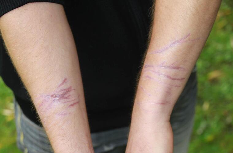 Dann kam der Blick auf die Unterarme. Der Stacheldraht hatte sich tief ins Fleisch gefressen. Bis auf den Knochen, wird ihm der behandelnde Arzt später sagen. "Komischerweise hatte ich keinerlei Schmerzen."