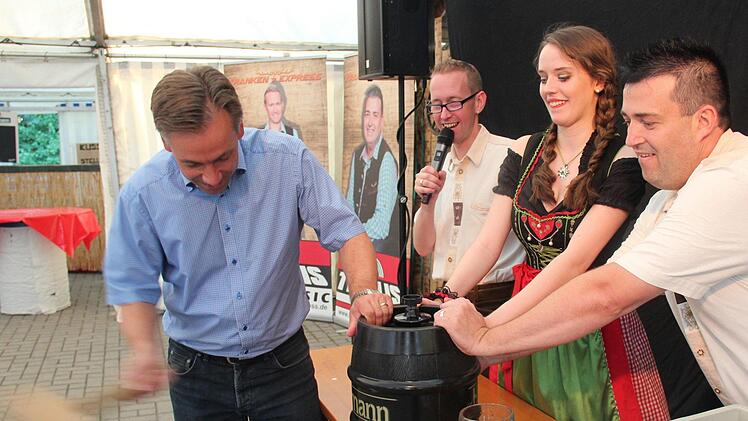Bereits der Freitagabend begann mit der Schlagerparty und Landrat Alexander Tritthart (CSU), Schirmherr des Zeltfestes, zapfte das erste Bierfässla mit einem Schlag an. "Seit ich Landrat bin, hab ich das nicht mehr gemacht", erklärte er zuvor. Aber der ehemalige Bürgermeister hatte es nicht verlernt.