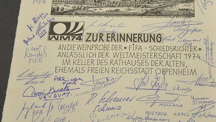 Ein Ausstellungsstück mit Geschichte hat Ehren-Kreisbrandrat Karl-Heinz Schalk dieser Tage dem Museum geschenkt. Es ist ein Blatt mit den Unterschriften der Fifa-Schiedsrichter, die bei der WM 1974 im Einsatz waren.