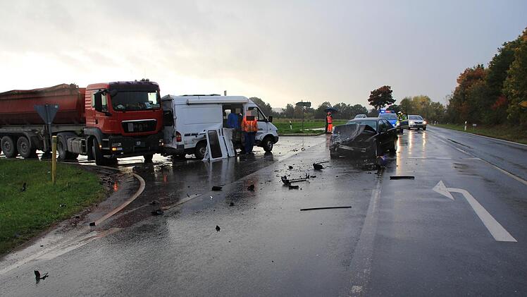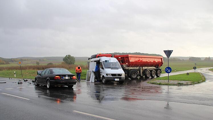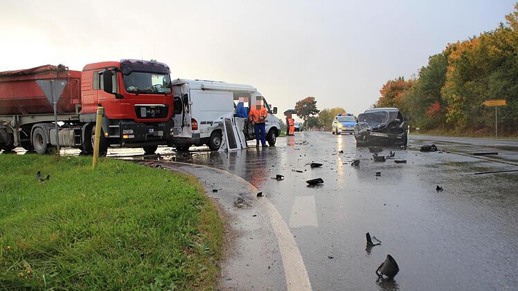 Wie die Polizei weiter mitteilt, wurde der Sprinter auf einen Lastwagen geschleudert, der gerade aus Richtung Wiesendorf kommend nach rechts zur B470 abbiegen wollte.
