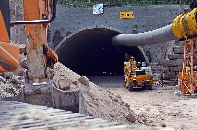 Die Bergmänner lassen sich von der Physik helfen, damit der ganze Tunnel nicht unter der Last des Gesteins zusammenkracht. "Das Ausbrechen des Tunnels erfolgt in verschiedenen Ebenen." Im technischen Kauderwelsch der Tunnelprofis nennt sich das Bauverfahren "Neue Österreichische Tunnelbaumethode". Erfunden haben es ausnahmsweise die Tiroler und nicht die Schweizer. Hierbei setzt man auf die Eigentragfähigkeit des Gebirges und versucht nicht wie früher, die Gebirgslast mit allerlei Balken zu stützen. Damit das Prinzip funktioniert, muss der komplette Röhrenquerschnitt peu-a-peu abgetragen werden.