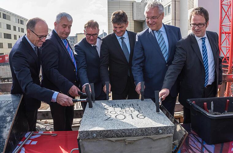 An der Baugrube auf dem Maximiliansplatz hob auch Bayerns Innenminister Joachim Herrmann (CSU) noch einmal die Bedeutung des Uni-Klinikums für Erlangen