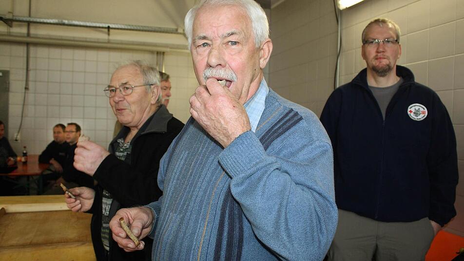 Die "Karl-Fischer-Gedächtniswurst" war am Samstag wie immer ein kleines Highlight bei der jährlichen Schlachtschüssel der Freiwilligen Feuerwehr Uehlfeld. Ob die Gäste das so empfinden, mag dahingestellt sein.