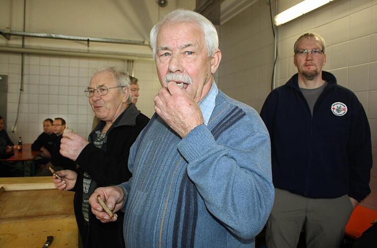 Die langjährigen und auch die jüngeren Feuerwehrmitglieder wissen jedoch: Die Zwiebelwurst - eine der vielen Leckereien, die aus dem jährlich gespendeten Schwein hergestellt wird - hat der vor wenigen Jahren verstorbene Karl Fischer vor 23 Jahren bei der ersten Schlachtschüssel des Vereins eingeführt. Und sie wird bis heute zu seinem Gedächtnis verspeist.
