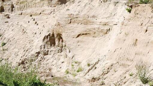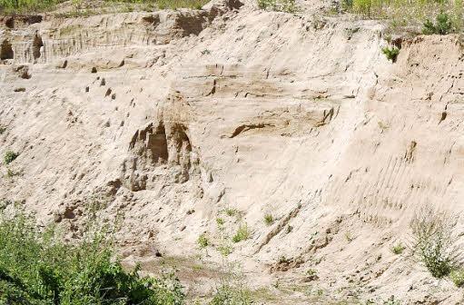 Eine Eisentor sperrt die städtische Sandgrube hinter den Tennisplätzen ab. Steinhaufen und Erdberge verraten, dass sie lange als Lagerplatz für Aushub benutzt wurde. Wie tief in den Sandhügel einst gegraben wurde, erkennt man von Nachbargrundstück aus. Steil bricht die Kante mehr als zehn Meter nach unten. Loser Sand am unteren Rand und deutliche Abbruchkrater zeigen, dass die Wand unruhig ist und ständig Rutschgefahr besteht.