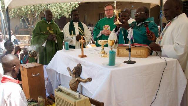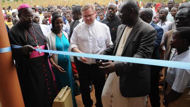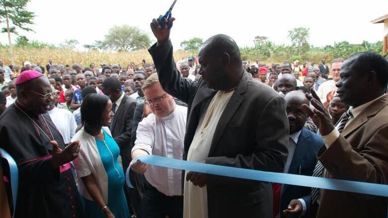 Ein viereinhalb Stunden dauernder Festgottesdienst in der Pfarrei Busaluga mit dem Bischof der Diözese Masaka, John Baptist Kaggwa, gehörte zu den Höhepunkten der Besuchsreise. Im Anschluss weihte der hohe Geistliche im Beisein des Vorsitzenden des Regierungsbezirkes Masaka, der beiden Gastpriester und weiteren Politikern und Vertretern der Pfarreien das Kultur- und Weiterbildungszentrum und eine Wasserzisterne ein. Er legte auch noch den Grundstein für eine Krankenschwestern-Wohnanlage.