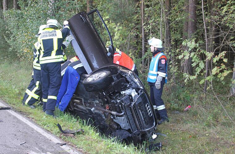 Ein schwerer Unfall ereignete sich am Dienstagvormittag kurz vor 10 Uhr auf der Verbindungsstraße zwischen Vestenbergsgreuth und Uehlfeld. Eine Audi-Fahrerin wollte mit ihrem Wagen einem Reh ausweichen, kam dabei in den Graben. Ihr Audi drehte sich danach um die eigene Achse, kippte in den Graben Richtung Wald und blieb dort auf der Seite liegen.