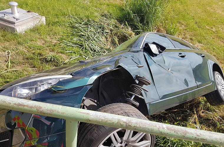 Ein 23-jähriger Fahrer eines 5er-BMW mit Fürther Kennzeichen landete am Freitagmorgen, gegen 9.30 Uhr, auf der Straße zwischen Buch und Gremsdorf (Landkreis Erlangen-Höchstadt) mit seinem Fahrzeug in einem Wassergraben. Der Fahrer eines Mercedes Kleinbusses sah den Wagen im Graben hinter einem Geländer und hielt an. Er leistete Erste Hilfe und rief den Rettungsdienst.