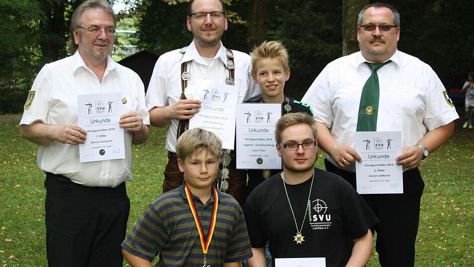 Silvio Hielscher und Helmut Schweikl mussten sich mit der Würde des ersten Ritters zufrieden geben. Schützenkönig bei der Jugend ist Leon Peter (248,4 Teiler), bei den Erwachsenen Florian Schweikl (253,3 Teiler).