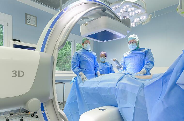 Während frühere C-Bögen manuell und teilweise unter Anstrengung zum OP-Tisch hin- und wieder weggefahren werden mussten, geschieht dies nun fast wie von selbst – gesteuert durch eine Fernbedienung. Das System merkt sich seine vorherige Position am OP-Tisch und nimmt sie auf Wunsch jederzeit automatisch wieder ein. „Das ist vor allem auch für das OP-Pflege-Team eine große körperliche und zeitliche Entlastung. Für alle ist das weniger Workload und weniger Stress“, so Mario Perl.