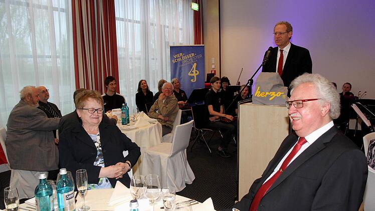 Herzogenaurach stattfand. "Da wo Sie jetzt sitzen, standen einmal Kanonen der Amerikaner", erinnerte Hacker an die ehemalige Kaserne und den Namen Herzo Base.