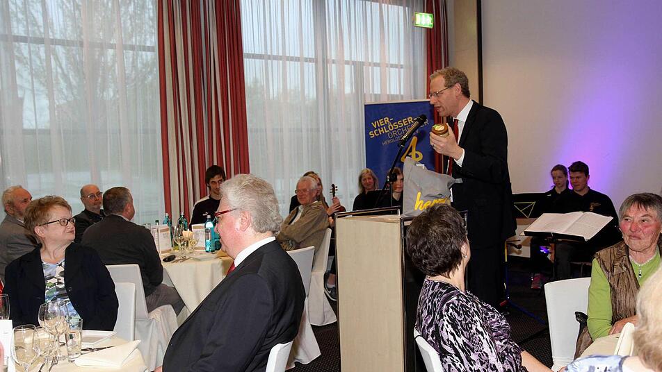 Die Abschiedsfeier mit vielen Abschiedsgeschenken der Ortsverbände für die beliebte Kreisgeschäftsführerin wurde von den "Landstreichern" aus Heroldsberg (Streichorchester des Vier-Schlösser-Blasorchester Heroldsberg) umrahmt.