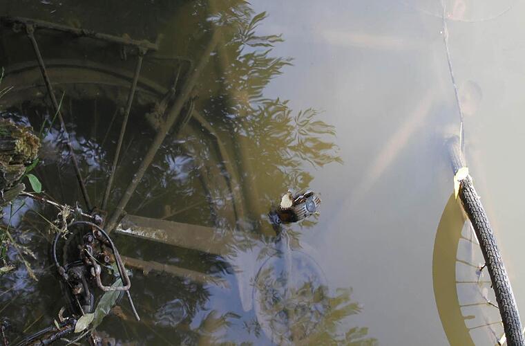 Maiwald bleibt vor einem Mountainbike stehen. Es ist ein richtiges Off-Road-Rad mit Stoßdämpfern und einer guten Schaltung. "Das ist definitiv geklaut worden. Gefunden wurde es am Parkplatz vom Freibad", sagt er. Viele Fahrraddiebe hätten es gar nicht wegen des Werts auf das Rad abgesehen. Oft seien es Betrunkene, die sich für ihren Heimweg irgendwo ein Fahrrad "ausleihen" und es dann irgendwo einfach wieder abstellen. Oder eben gleich in die Aisch rollen lassen.