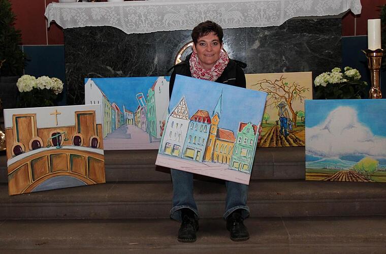 Die Adelsdorfer Künstlerin Manuela Keller-Denzler hat fünf Bilder zur Fastenzeit gemalt. Die werden beim Pfarrfest am Donnerstag versteigert - für eine neue Orgel.