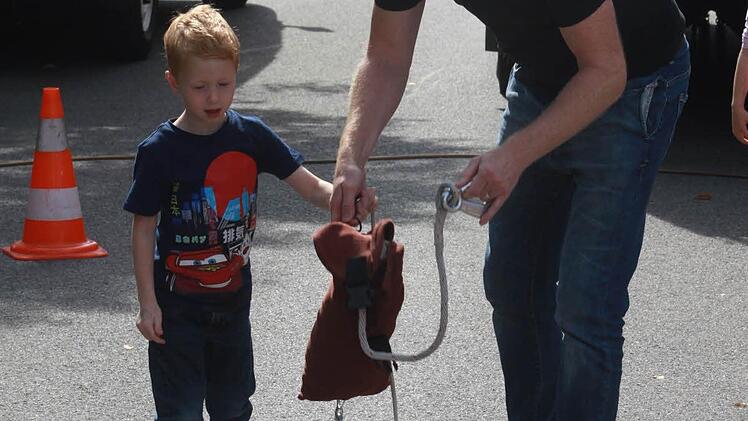Denn die erste Überraschung gab es kurz nach dem offiziellen Start. Normalerweise ist der Weißwurstfrühschoppen eher schlecht besucht. Die Besucher kommen meist zur Mittagszeit, um die Vorführungen der Feuerwehr zu sehen, um die Einsatzfahrzeuge zu erkunden, um sich über die Wehr an sich zu erkunden. Doch heuer standen weit vorher viele Kinder mit ihren Eltern vor dem Gerätehaus in der Teplitzer Straße. Dafür gab es einen einfachen Grund, der vom Kommandanten Thomas Schneider erläutert wurde. Die Kinder des Dechsendorfer Kindergartens Unsere Liebe Frau standen nämlich im Mittelpunkt der Veranstaltung.
