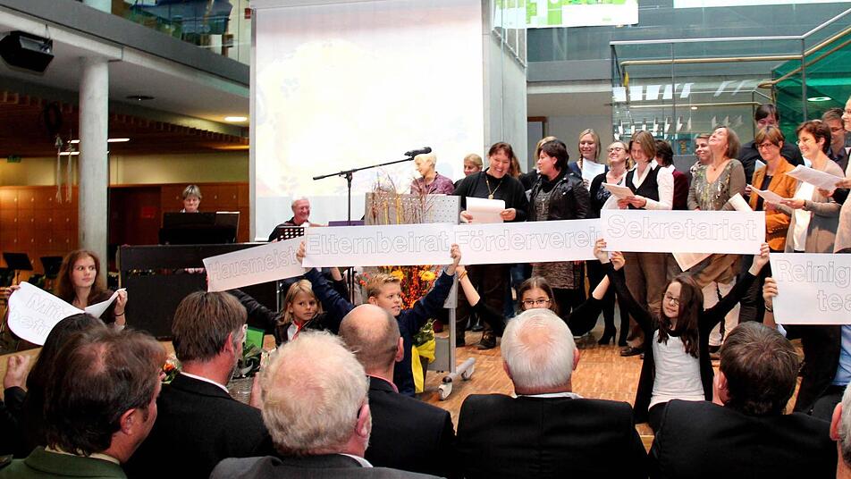 Alle Festredner, auch Christine Gleim vom Elternbeirat und die beiden Vertreter des Personalrates Matthias Krapp und Dieter Steiner waren voll des Lobes für die "Neue" und hatten passende Geschenke dabei."Wir sind stolz und froh, dass Sie bei uns sind!", meinte der Höchstadter Bürgermeister.