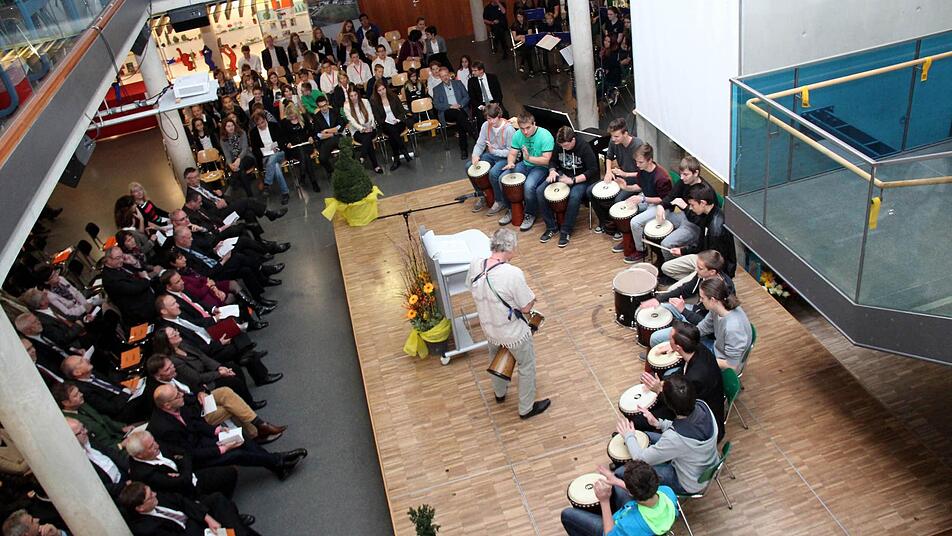 Ein reichhaltiges Programm erwartete alle Anwesenden, und die Percussiongruppe unter Claus Zwanziger eröffnete rhythmisch und lautstark, aber gekonnt den Festakt. Die offizielle Amtseinführung erfolgte durch den leitenden Regierungsschuldirektor und Ministerialbeauftragten Johann Seitz. "Seit 17. Februar sind Sie die Nachfolgerin von Reinhard Bum. Sie haben in der kurzen Zeit - genau 286 Tage - schon viele Dinge bewegt, sind aufgeschlossen gegenüber Neuem und zeigen großes Engagement!", lobte Seitz die neue Schulleiterin.