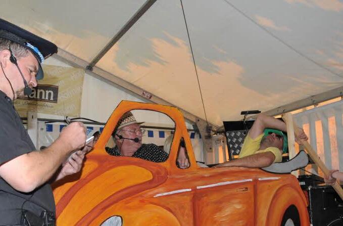 Schorsch machte deshalb den Vorschlag das Freibier nicht wie üblich den Ortsburschen und den Gästen zu reichen, sondern den ledigen Damen in Niederlindach. Nach einer Maß frisch gezapften Bier sehe die Welt - und damit die Männer - ganz anders aus. Um es auf den Punkt zu bringen: Das Ganze nennt sich "Schönsaufen", wie Schorsch sagte. Worauf es tosenden Applaus im Festzelt gab. Die Frage von Waltraut an ihren Gatten Schorsch, warum gerade er den Bieranstich machen muss, war schnell beantwortet.
