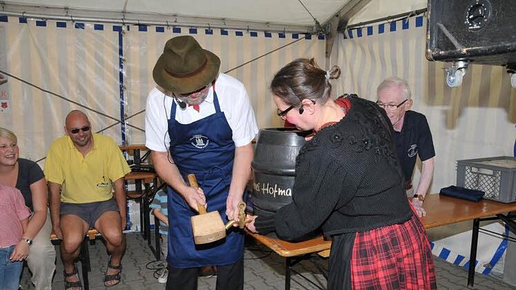 Zwei kräftige Schläge genügten, um bei der Kirchweih in Niederlindach das erste Fass anzustechen. Allerdings erfolgte der Anstich nicht durch Bürgermeister Horst Rehder, der musste kurzfristig zu einer Schulung, sondern durch seinen Adjutanten Schorsch. Das Publikum brauchte allerdings nicht allzu lange, um zu erkennen, dass es sich dabei um den vermeintlich verhinderten Rehder handelte.