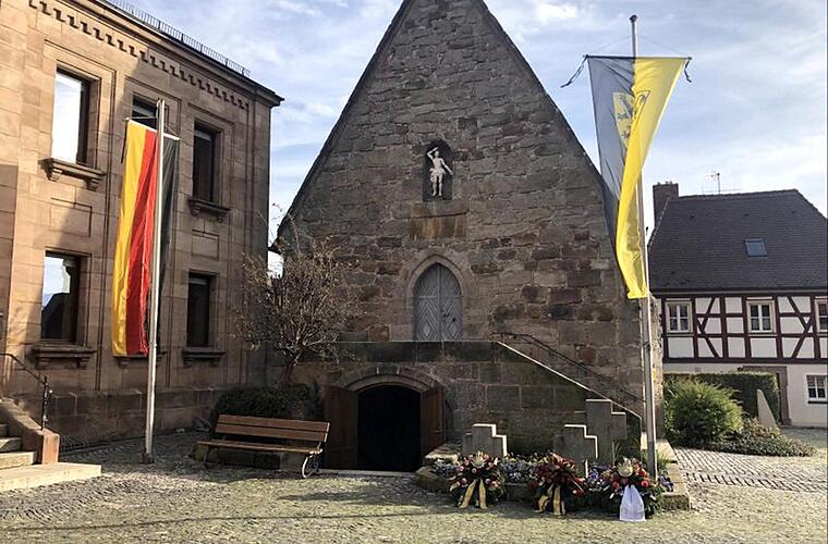 Auch wenn es keine Feier gab, eine Rede hat Bürgermeister German Hacker zum Volkstrauertag, der in einem krisenhaften Jahr liegt, dennoch verfasst. Zusammen mit Pfarrerin Andrea Schäfer und Pfarrer Helmut Hetzel gedachte er in aller Stille der Opfer.