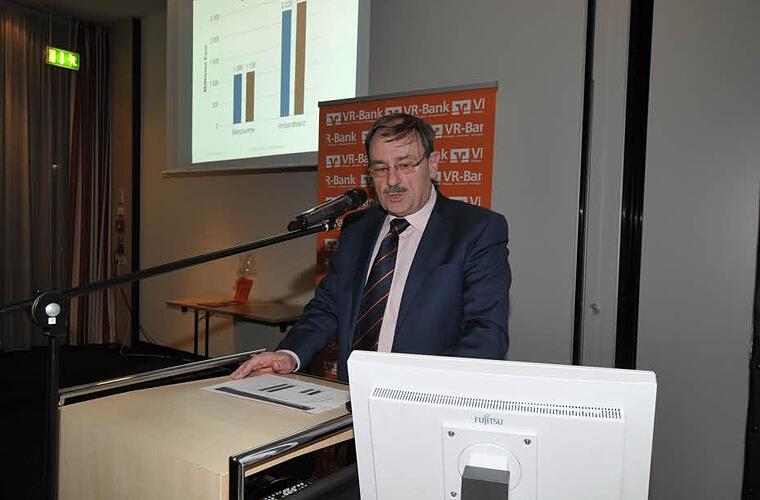 Steigende Zahlen in allen Bereichen verkündete Vorstandsmitglied Bernd Ehrlicher bei der Ortsversammlung der VR-Bank Erlangen-Höchstadt-Herzogenaurach (EHH) in der Aurachstadt.