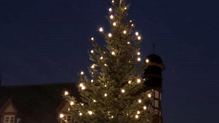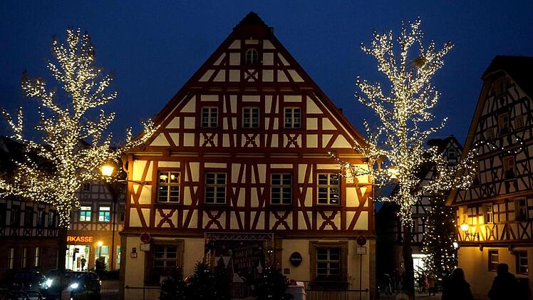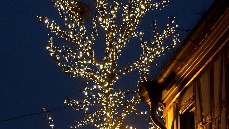 Da der Weihnachtsmarkt und der lebendige Adventskalender diesem Jahr abgesagt werden mussten, soll zumindest die entsprechende Beleuchtung für ein bisschen Weihnachtsatmosphäre sorgen. "Denn Licht schafft Atmosphäre", sagte Bürgermeister German Hacker, als die fünfjährige Clara den Weihnachtsbaum erstrahlen ließ (der FT berichtete). Hacker verweist auf die Neuerung auf dem Marktplatz. Dort strahlen erstmals die beiden großen Bäume an der Rückseite des "Alten Rathauses" und lassen den Marktplatz und das Fachwerk in einem neuen Licht erstrahlen.