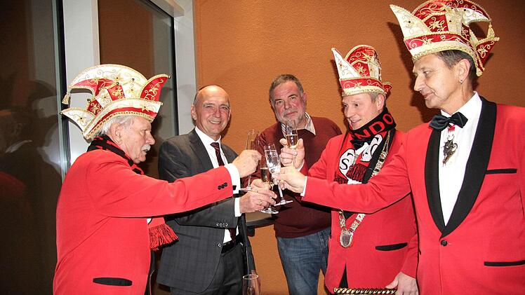 "Wir sind etwas später gekommen, denn wir leiten dann gleich die Sitzung", erklärte Petsch und konnte es sich auch nicht verkneifen, auf die noch immer nicht fertige Halle hinzuweisen. "Wir werden bis zum Aschermittwoch am 26. Februar ordentlich arbeiten, Geld ist ja genug da", versicherte Matthias Petsch. Der Bürgermeister wünschte der Truppe eine erfolgreiche Session.