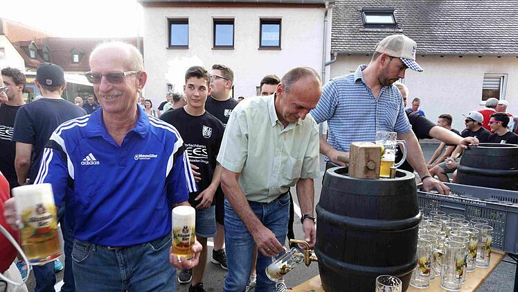 "Wir ham halt aan Heiner, aan Heiner ham mir", sangen die Ortsburschen schon vor dem Anstich, der dann auch ohne Spritzer vollzogen wurde.