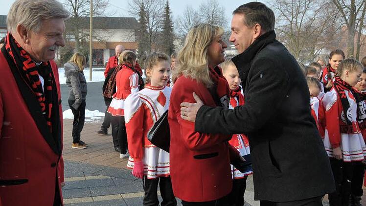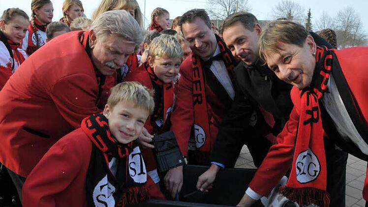 Damit sich die Narren beim obligatorischen Geldbeutelwaschen bei frostigen Temperaturen nicht die Finger erfroren, stellte die Gemeinde warmes Wasser zur Verfügung. Das Ritual des Geldbeutelwaschens dient einem alten Glauben zufolge dazu, neues Geld in die Geldbeutel zu spülen. Nach dem offiziellen Teil im Rathaus zog es die Narren zum traditionellen Heringsessen in das Foyer der Mehrzweckhalle.