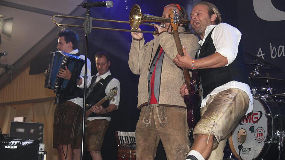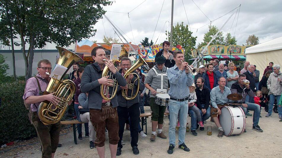 Auf dem Marktplatz gaben dann die Ortsburschen ihre ersten Kerwaslieder zum Besten und Festwirt Bastian Schumann hatte ein sehr widerspenstiges Fass mitgebracht. Nach vielen kräftigen Schlägen des Bürgermeisters Heinrich Süß floss dann das Freibier. Hinter dem Posaunenchor formierte sich dann der Festzug zum offiziellen Anstich. Im gut besuchten Festzelt spielten bereits die "Leutenbacher Musikanten". Das Fass zum offiziellen Anstich erwies sich als nicht so widerspenstig und nach zwei Schlägen wurden die Krüge zum ersten Prosit gefüllt.