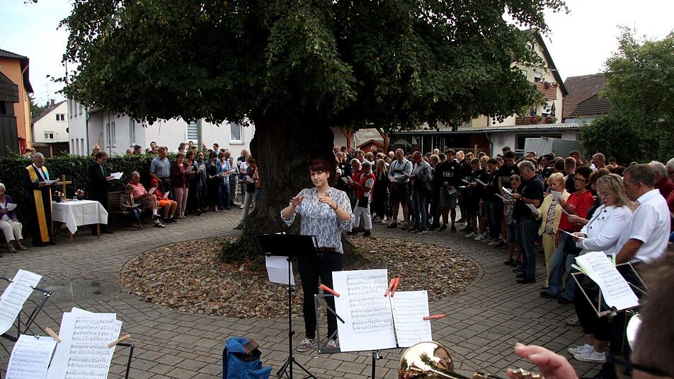 Pfarrer Franz Reus und sein evangelischer Amtskollege Wilfried Lechner-Schmidt erinnerten unter der 147 Jahre alten Friedenslinde an den Ursprung, die Weihe der Kirche. Früher sei es dabei wohl nicht so lustig und laut zugegangen, "aber die Kirchweih war schon immer ein Fest der Freude", sagte Lechner-Schmidt. Ursprünglich sei die Bevölkerung noch fest mit der Kirche verbunden gewesen, doch die Gesellschaft habe sich gewandelt und die Kirche habe nicht Schritt gehalten, meinte Lechner-Schmidt. Auch Franz Reus wünscht sich eine Erneuerung der Kirche. Sie müsse mehr auf die Menschen hören und sich ihrer Probleme annehmen, nur so könne sie gesunden.