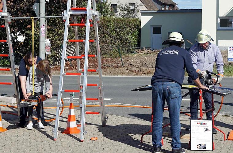 Bei der Weisendorfer Feuerwehr durften die Besucher mit Spreizer und Rettungsschere arbeiten.
