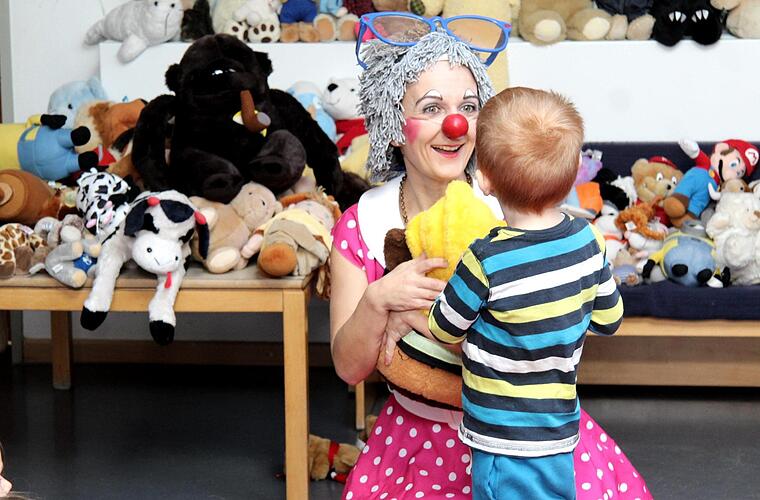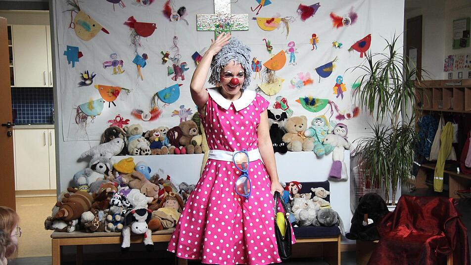 Die evangelische Kindertagesstätte Weisendorf bekam mit Susan Hartinger alias Klinik-Clown Rosa Schmutz außergewöhnlichen Besuch. Sie holte einen großen Berg Kuscheltiere ab und half mit ihrem lustigen Auftritt den Kindern dabei, den Verlust schnell zu verschmerzen.
