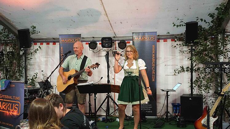 Der Nieselregen konnte die Kirchweihbesucher nicht wirklich schrecken und Peter Brehm war sich sicher, dass den Seebachgrund nur ein Ausläufer des Gewitters streifen würde. Er sollte Recht behalten, denn die dunklen Gewitterwolken in Richtung Fürth waren von Kairlindach aus gut zu sehen. So konnten sich die Gäste beruhigt dem leiblichen Wohl widmen und sich von Markus & Tina musikalisch unterhalten lassen.