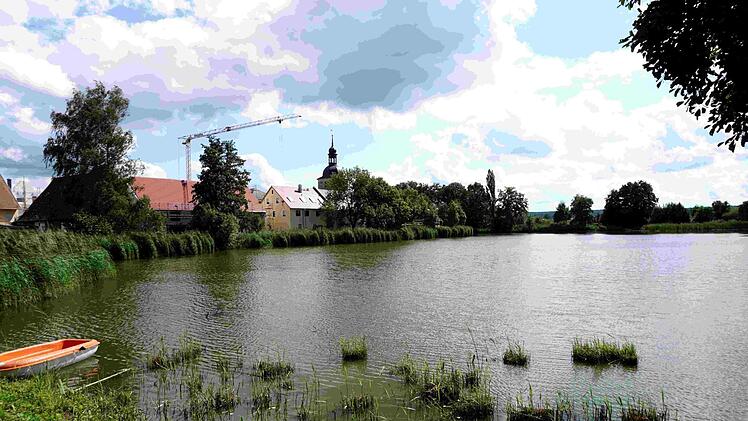 Besonders beliebt ist bei der Kerwa stets der Biergarten. So bietet er schattige und sonnige Sitzplätze ebenso wie einen wunderschönen Ausblick auf den Kirchweiher und die am anderen Ufer hervorlugende St. Kilianskirche, der zu Ehren die Kerwa gefeiert wird.