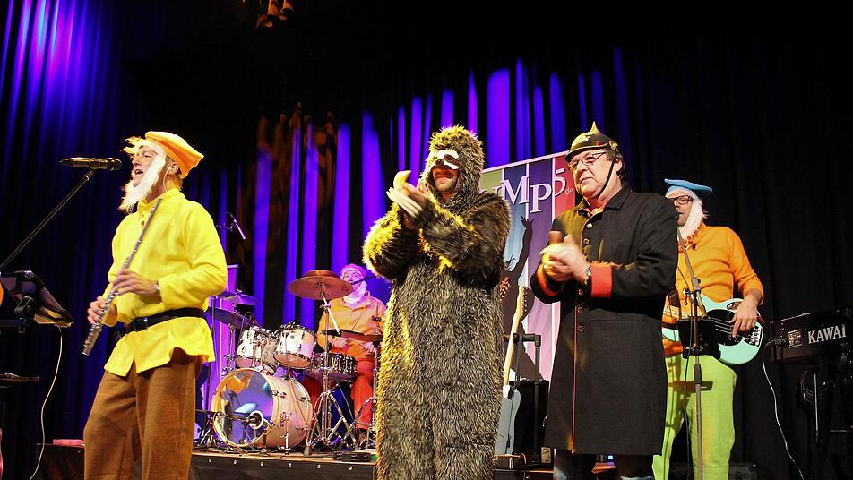 Es war ein musikalisches Kontrastprogramm, mit dem Michi, Andy, Gerald, Jens und Olli den Saal der Kulturfabrik aufmischten. Direkt nach dem Twist hieß es "Alles Walzer". "Home Star" Michael rief das Kufsteinlied aus: "Ich will euch jodeln hören!" Das Ergebnis war schier herzzerreißend. Erst der Refrain  " ... man denkt an Höchstadt, man denkt auch an Fürth" holte das närrische Volk wieder zurück auf den Boden des Aischgrunds.