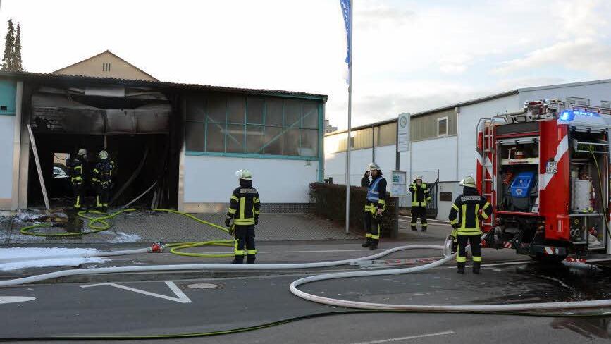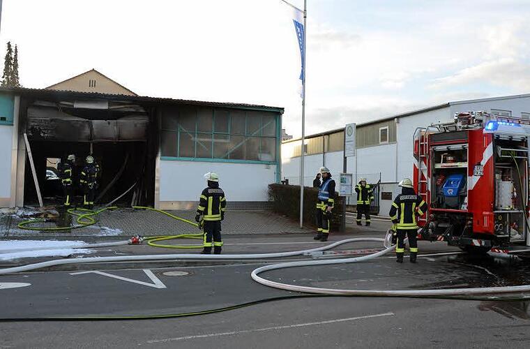 Als die Einsatzkräfte eintrafen, stand die Werkstatt bereits in Vollbrand. Zur Bekämpfung kamen laut Einsatzleiter Friedhelm Weidinger insgesamt fünf mit Atemschutzgeräten ausgerüstete Trupps, die aus je zwei Einsatzkräften bestanden. Während des Einsatzes wurden zwei Gasflaschen geborgen und gekühlt. Etwas länger zogen sich die Nachlöscharbeiten hin, bei denen unter anderem mit Wärmebildkameras nach Glutnestern gesucht wurde. Mit dem Drehleiterfahrzeug wurde die Dachhaut des ausgebrannten Teils der Werkstatt kontrolliert. Gegen 18.30 Uhr war der Einsatz beendet.