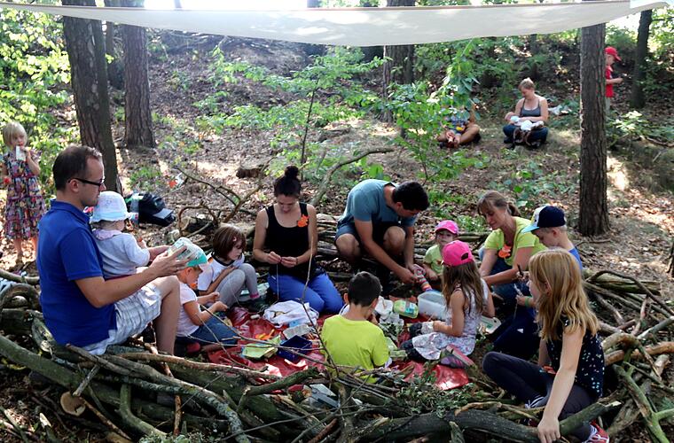 Fröhlich streiften die Kinder durch den Wald und sammelten anschließend Bastelmaterial. "Wir haben Rinde, Eicheln Tannenzapfen und sogar Federn gefunden", so die achtjährige Ronja ganz stolz. Daraus bastelten sie dann Mobiles, aber auch Baumscheiben wurden eifrig bemalt. "Ich war bis zur 1.Klasse in einem Waldkindergarten und ich fand es toll, dass wir so viel im Wald gemacht haben. Ich mag den Wald, das Vogelgezwitscher, das Rascheln, wenn Tiere vorbei huschen", fügt Ronja noch an.