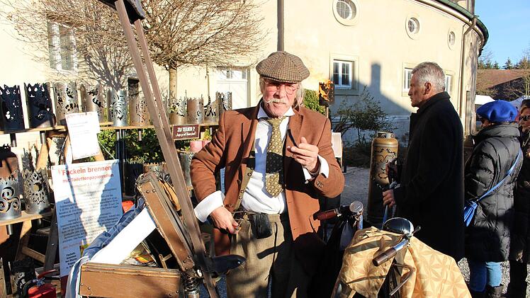 Natürlich waren auch ganz viele adventliche und weihnachtliche Dekorationen zu haben. Nicht ganz zufrieden war allerdings ein Pfeifenhersteller aus der Nähe von Würzburg, der mit seinem Outfit Sherlock Holmes nachahmte. Sein Geschäft florierte nicht nach Wunsch: Es gebe halt nur noch ganz wenige Pfeifenraucher, seufzte er.
