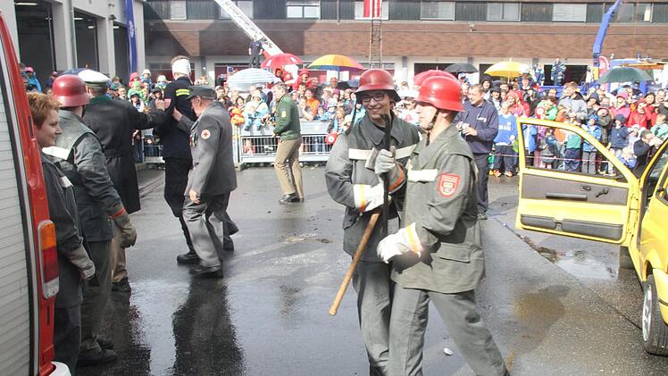 Klar, Schade sei es schon. Doch Stadtbrandinspektor Peter Walz gab zu: "Wir hatten die ganzen letzten Jahre unglaubliches Glück und immer Sonnenschein, da müssen wir halt auch mal mit so einem Tag leben." Das dachten sich aber auch die Besucher und blieben "ihrer" Feuerwehr treu. Mehrere Tausend Gäste fanden sich trotz der immer wiederkehrenden Regenschauer ein und ließen sich von den Vorführungen der Feuerwehrleute ebenso beeindrucken wie von deren Equipment.
