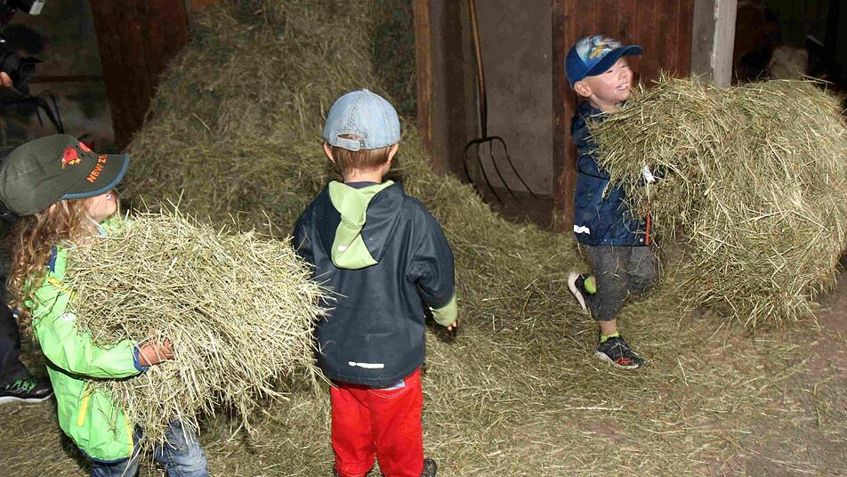 Zum wiederholten Male waren Kinder auf dem Hof von Christa und Manfred Grau in Reinersdorf zu Gast. "Wir haben das schon gemacht, bevor der Bauernverband die Kindertage initiierte", erzählte Christa Grau. Etwas schade war, dass es zu Beginn der Exkursion nach Reinersdorf regnete, "aber wir und die Kinder lassen uns von ein paar Tropfen nicht abhalten", meinte Kindergartenleiterin Sandra Ebersberger schmunzelnd, die den Hof schon einige Male mit Kindern besucht hatte.
