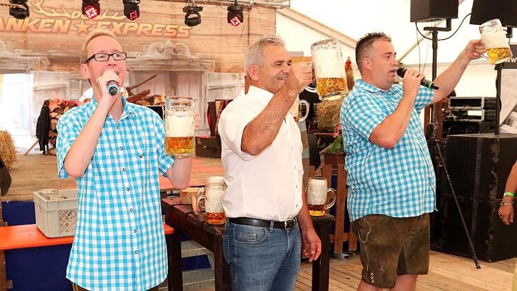 Zwei Schläge benötigte Bürgermeister Ludwig Nagel (CSU), um am Freitagabend das Festbier anzuzapfen. Nagel befürchtete zwar vorher, das Fässla könnte wie einst einmal in Röttenbach, leer, also ein Mogelfass sein, was sich dann aber als unbegründet herausstellte. Der Bürgermeister freute sich auch, dass diesmal das Zeltfest in seiner Gemeinde stattfand. "Der Gemeinderat war einstimmig dafür."