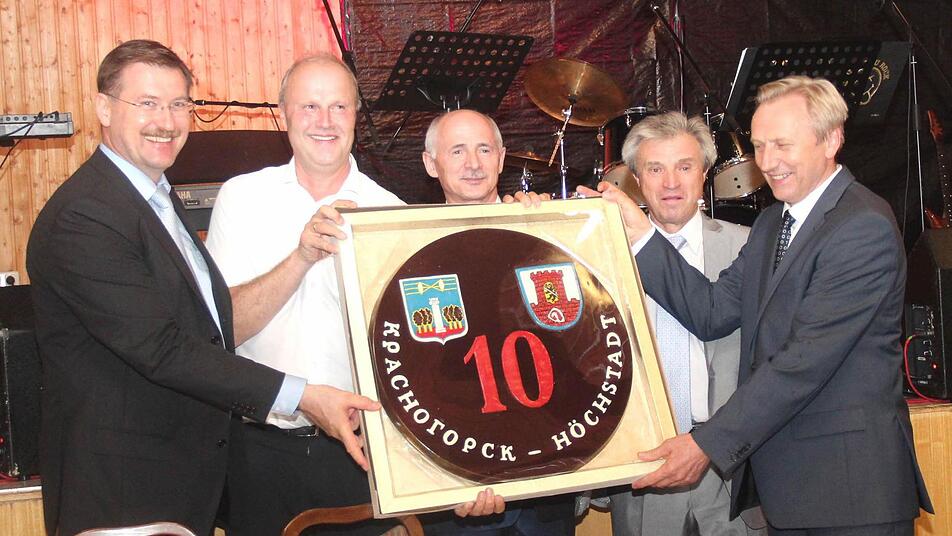 Impressionen von Krasnogorsk liefen auf der Leinwand während des Sektempfanges. Eine Band der Mittelschule unter Leitung von Rektor Michael Ulbrich sorgte für Stimmung, ebenso wie die Band Trouble X, eine gemixte Gruppe (Gymnasium, Ritter von Spix-Schule und ehemalige Gymnasiasten unter Leitung von Wolfgang Köberlein), die Frucht der guten Kulturarbeit der Stadt.