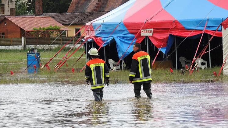 Am Mittwochnachmittag nun zeigte die Aisch unmissverständlich, was in ihr steckt. Binnen zwei Stunden stand der Festplatz unter Wasser und es blieb gerade noch Zeit, die glücklicherweise nicht allzu große Anzahl Tiere in Sicherheit zu bringen.