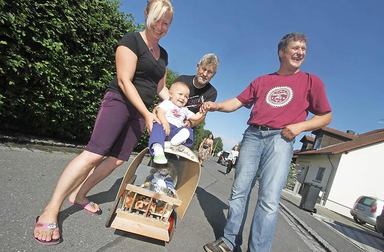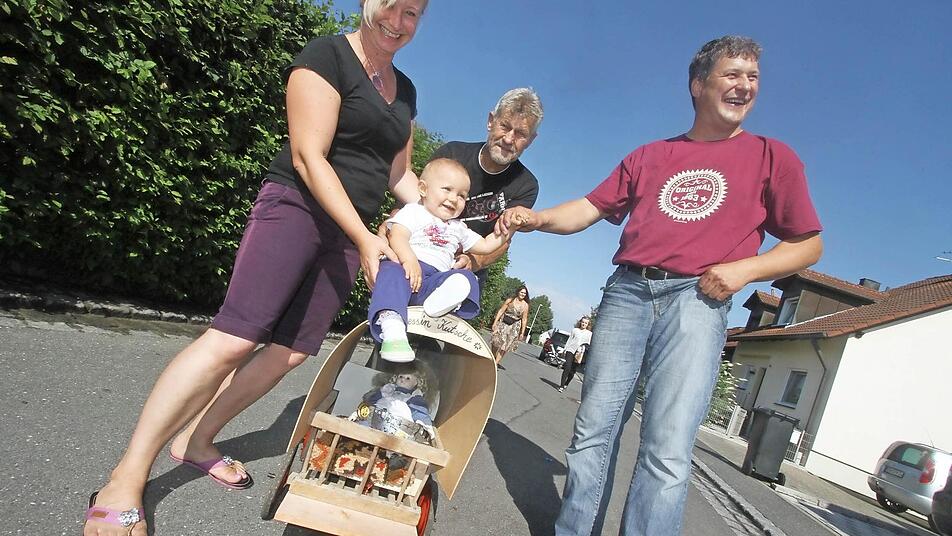 Zugegeben: Der Planwagen ist ein wenig kleiner als bei den Waltons. Daher reicht auch der Opa zum Ziehen. Drei Wochen hatte er gebastelt und die Idee, dass es eine Geschichte für die Zeitung ist, hatte er erst kurz zuvor gehabt. Ja, und über den einzigen Planwagen in ganz Niederlindach berichten wir doch gerne. Dass dort zwei Geburtstage gefeiert wurden, war dann nur noch Nebensache.