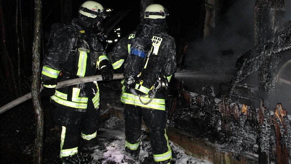 In der Nacht zum Dienstag hat es in Zeckern, einem Ortsteil von Hemhofen im Landkreis Erlangen-Höchstadt, gleich zweimal gebrannt. Zunächst wurden die Feuerwehren zu einem brennenden Holzstapel am Ortsrand gerufen. Als dieser gelöscht war, fiel den Einsatzkräften eine Rauchsäule über dem Waldstück am anderen Ortsende auf. Dort stand eine Maschinenhalle in Flammen.