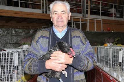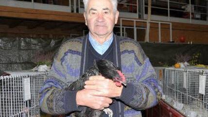 Den Gedächtnispokal, er wurde von Familie Kaiser gespendet, sicherte sich Franz Bock; der Hücking-Pokal ging nicht wie gewohnt an den Sohn der Stifterin, sondern an Herrmann Zell, der sich den Pokal mit der von ihm gezüchteten Rasse Zwerg-Orpington sicherte. "Ich bin seit zwölf Jahren aktiver Züchter",betonte Zell. Außer ein paar Zinnbechern - das sind in der Regel Verbandspreise - hat Zell noch nichts gewonnen. Stolz präsentierte Zell deshalb nach dem offiziellen Teil eines seiner Siegertiere zum Foto.