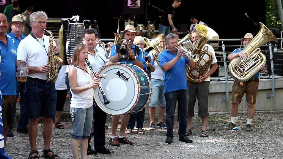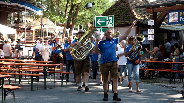Nach dem Einzug der Kerwasburschen am Samstag übernahm "Appendix" das musikalische Zepter und es dauerte nicht lange und die ersten Kirchweihbesucher standen auf den Bänken. Am Sonntag kamen vor allem die Freunde der Blasmusik auf ihre Kosten und mit "Marsch der Ehemaligen" eröffneten die Ehemaligen den Frühschoppen. Die Ehemaligen wurden am Nachmittag von der Stadtjugendkapelle abgelöst und ihre Plätze auf dem Podium nahmen die "Blauen Zipfel" ein.