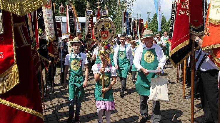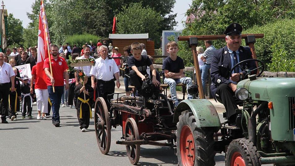 Vorsitzender Michael Hofmann verlas und begrüßte 113 teilnehmenden Vereine und Verbände vom Rednerpult. Die vielen Zuschauer am Straßenrand, die das Spektakel mitverfolgten, applaudierten kräftig den Teilnehmern. Der Tross wurde von den Mitgliedern der Jubelwehr angeführt, es folgte eine Kutsche mit den verdienten Mitgliedern Jubelwehr. Darin saßen Fritz Pfister, Martin Holzmann, Heinrich Arneth, Paul Leisgang, Helmut Sponsel und Ex-MdL Walter Hofmann. Sie hatten sich diese Ehre aufgrund ihrer über 60-jährigen Vereinszugehörigkeit verdient.